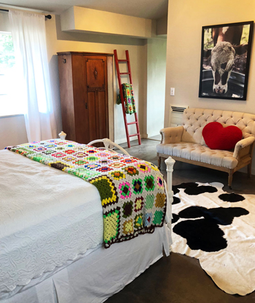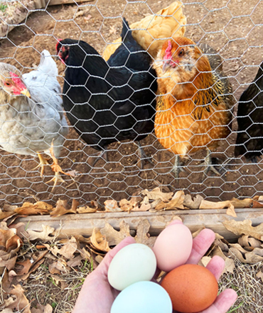 Take in nature and get to know our resident animals, including retired show horses, miniature cows, and chickens.